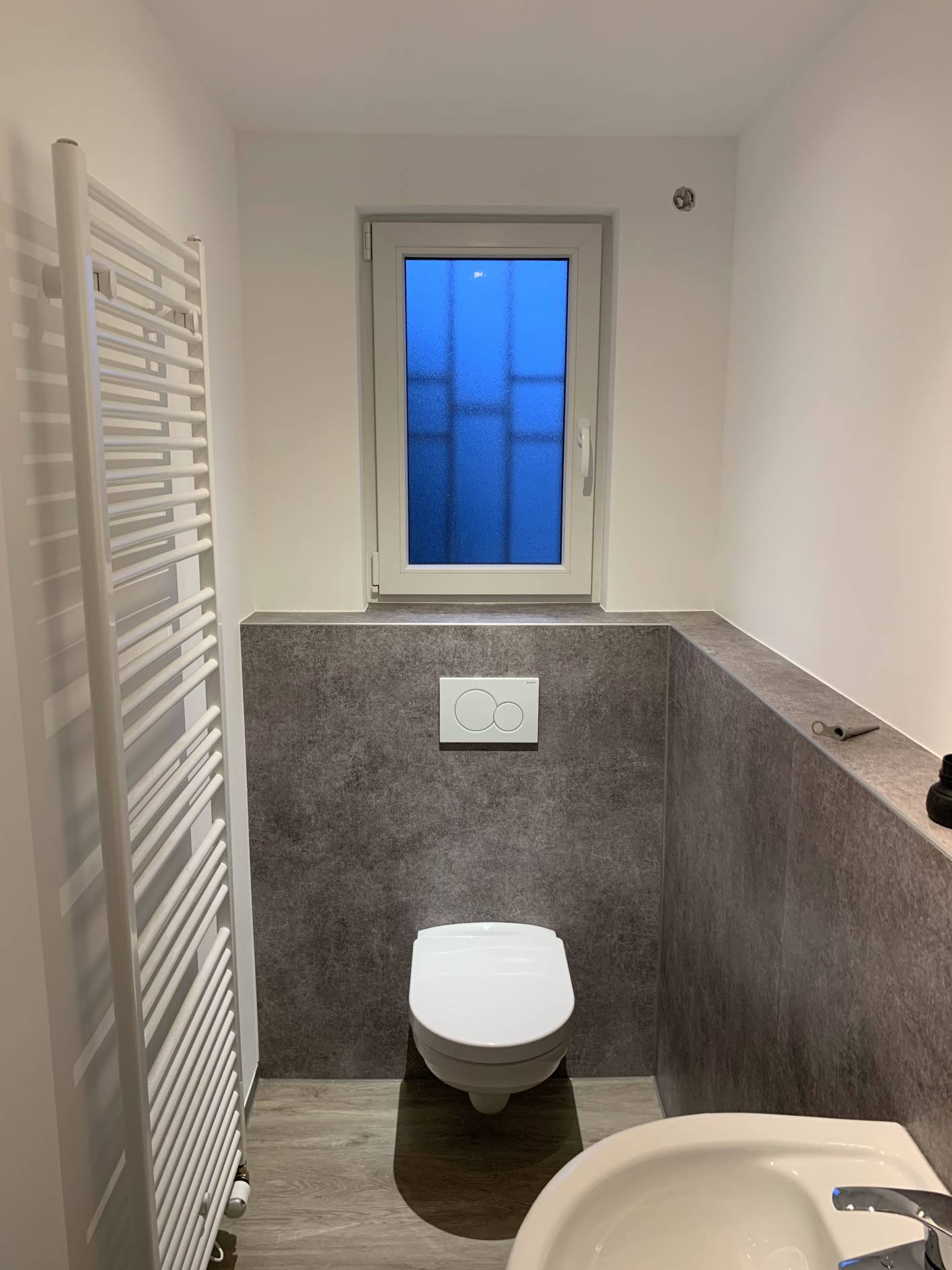 Leistung: Wo Zeitdruck hoch ist, es schnell fertig werden soll, dennoch modern und fugenlos sein soll, auf Trocknungszeiten nicht gewartet werden kann, sind die Mineral-Design Vario platten genau richtig. Auch hier sollte durch ein enges Zeitfenster ein modernes und zeitloses Bad entstehen.