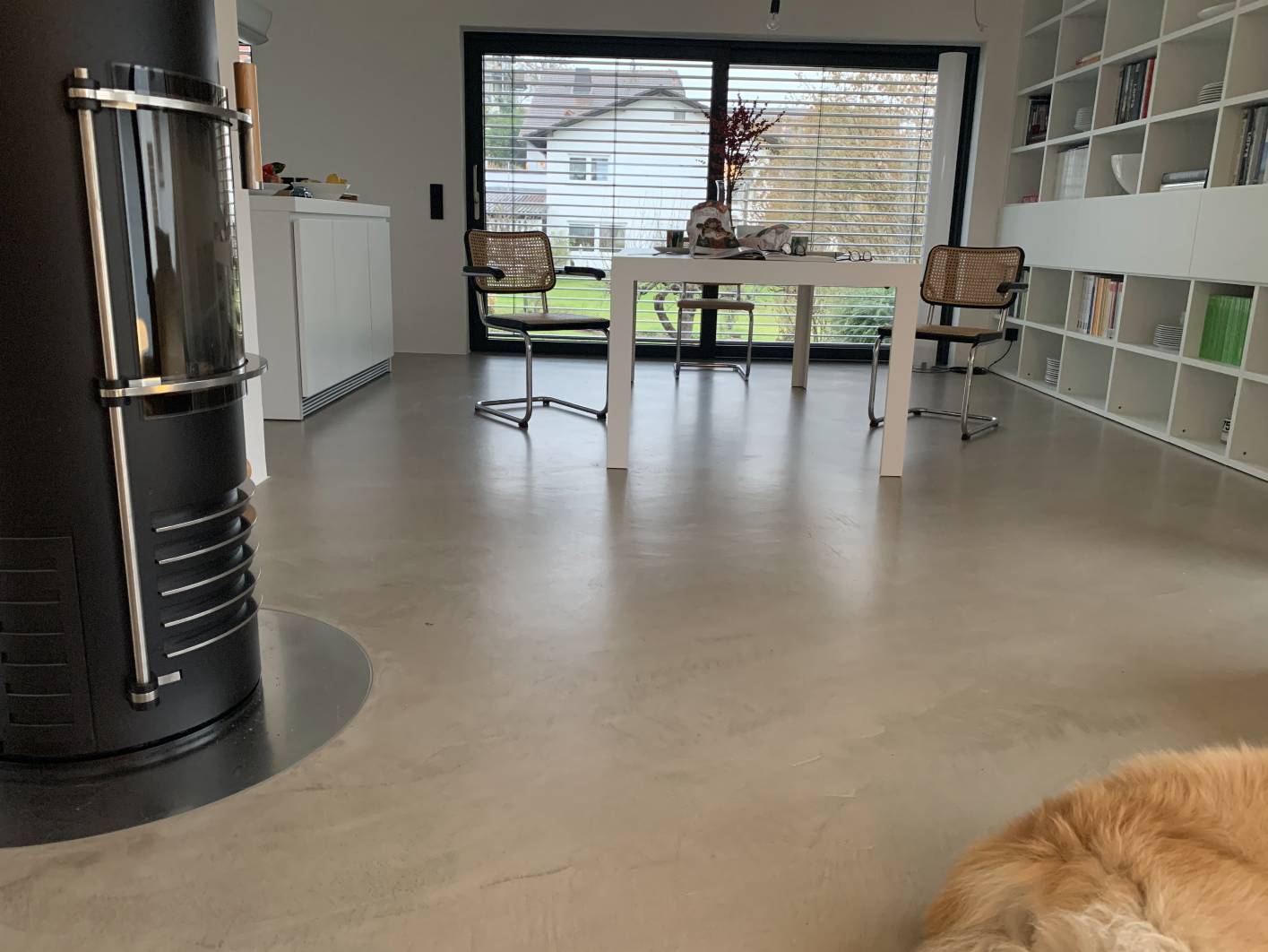 Leistung: Im Wohn- und Essbereich wurde ein Fugenloser Boden von Brillux gewünscht. Der 2K Mineralico überzeugte von seiner Nivelliereigenschaft zu einer planen Fläche.